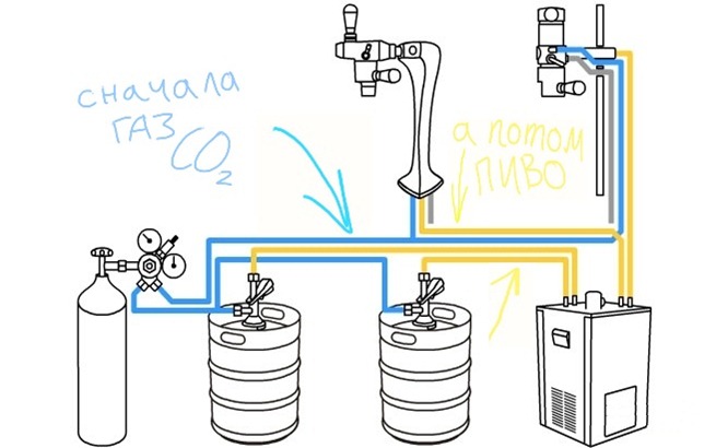Как на схеме:Только в таком случае можно будет разливать пиво еще и в бокалы.