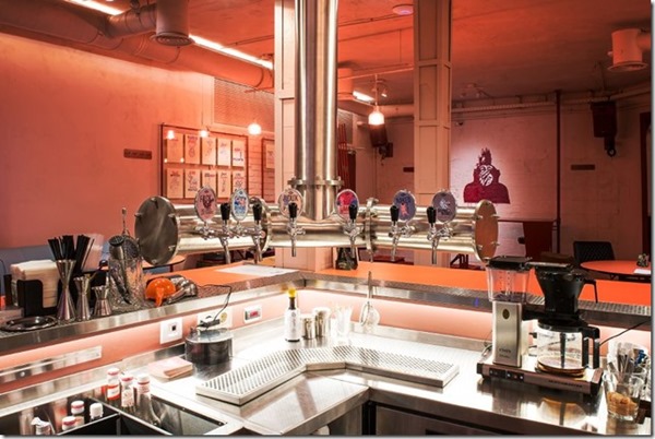 Приходя в паб, мы по привычке ждём, что пивные колонны словно вырастут перед нами из барной стойки. Если театр начинается с вешалки, то пивной ресторан – со стойки и стильных колонн. Есть много красивых дизайнов, классических и современных. Купить и поставить традиционную колонну может каждый, тут нет никакого секрета, ничего эксклюзивного. Но вот вы входите в зал и видите, что пивные колонны спускаются... с потолка! Вдоль него тянутся блестящие металлические трубы с пивопроводами и упираются в горизонтальную трубу, подвешенную над стойкой. Немного брутальный индустриальный стиль и полный разрыв шаблона! Впечатление, будто вы оказались на суперсовременном пивзаводе и пьёте пенное прямо из танков.